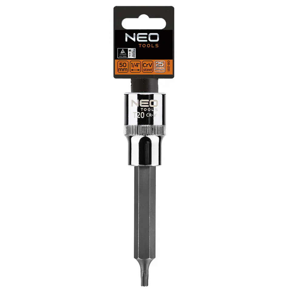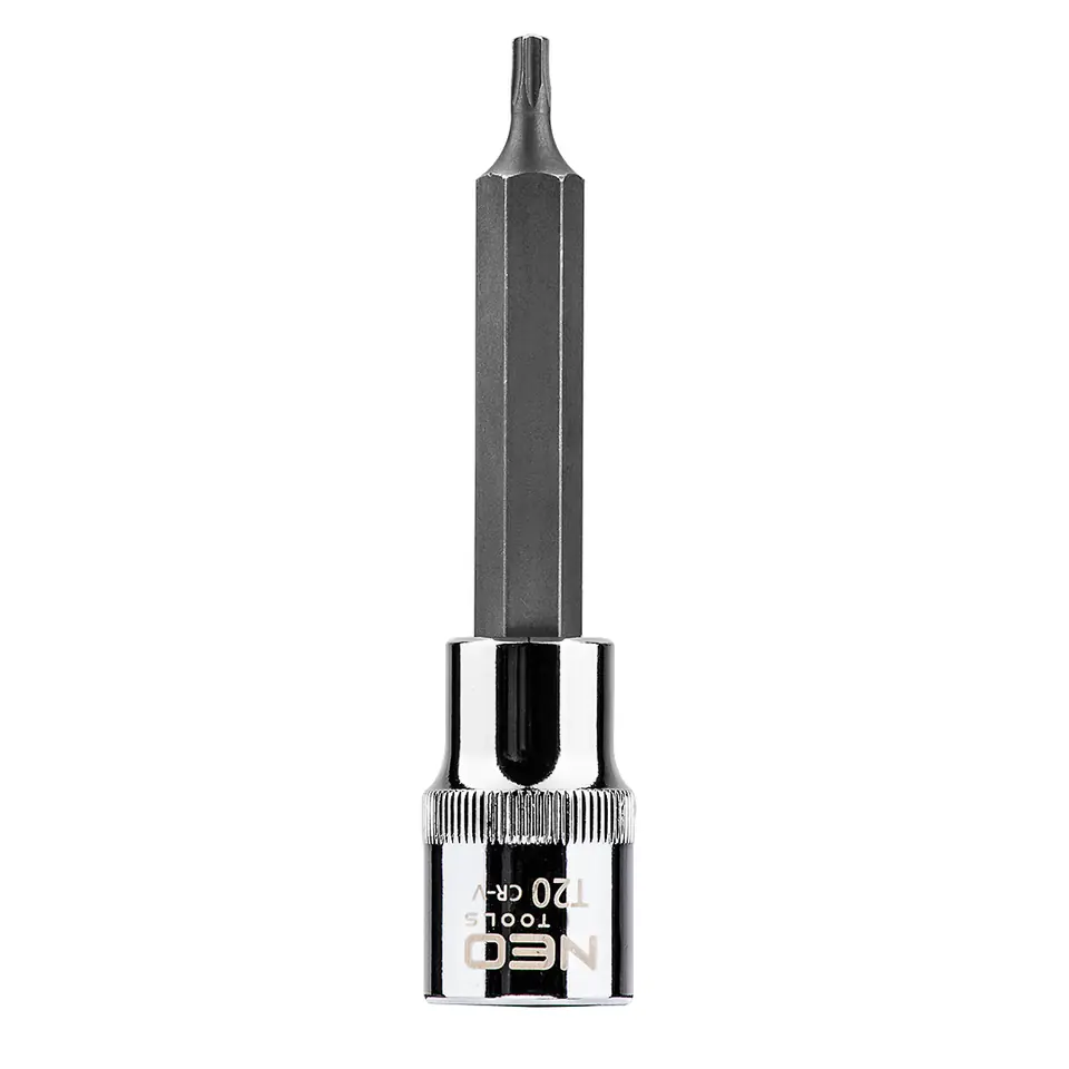 Końcówka Torx na nasadce 1/2", T20 x 100 mm, nasadka ze stali CrV, końcówka ze stali S2, certyfikat TÜV M+T, 25 lat gwarancji