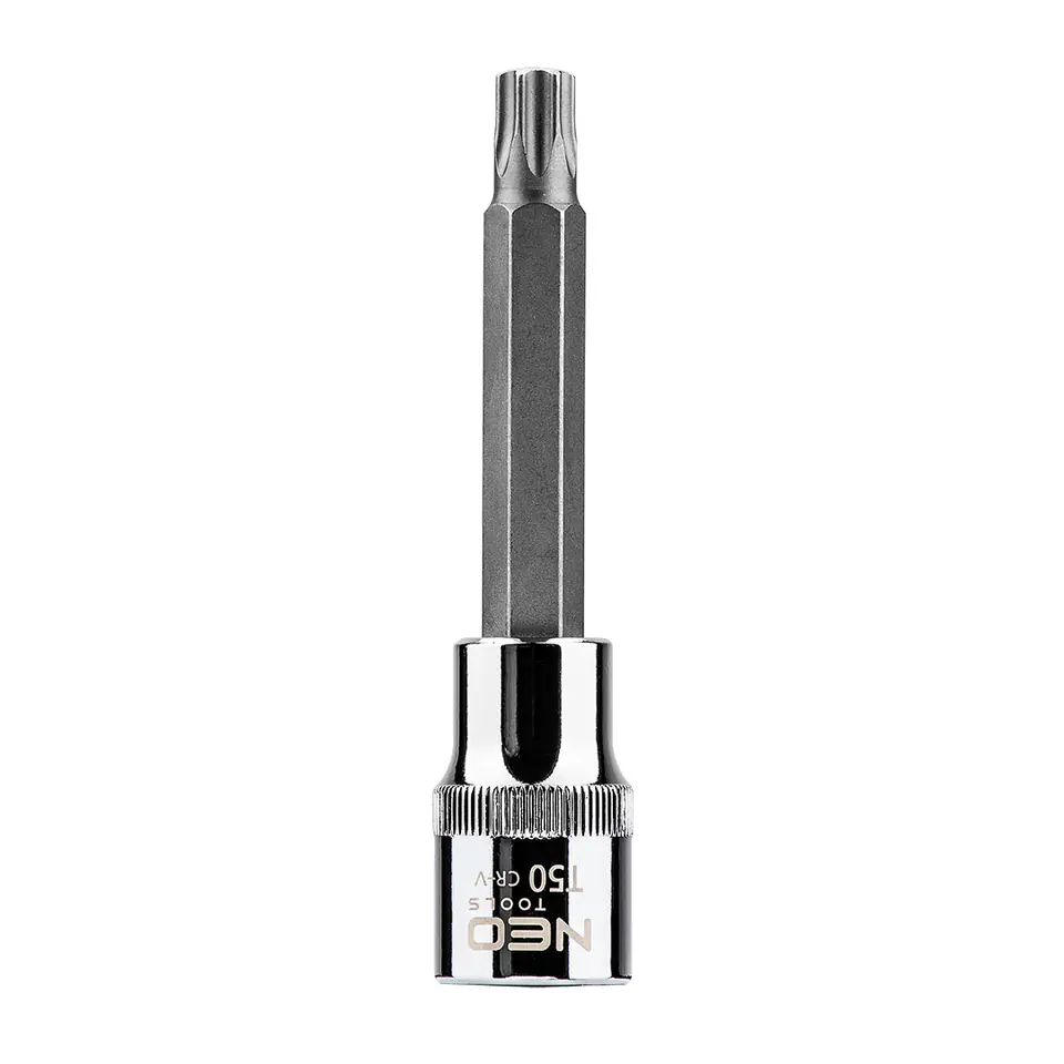 Końcówka Torx na nasadce 1/2", T50 x 100 mm, nasadka ze stali CrV, końcówka ze stali S2, certyfikat TÜV M+T, 25 lat gwarancji
