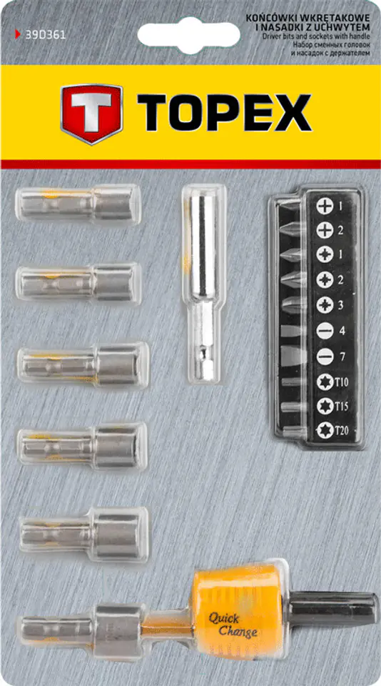 Końcówki wkrętakowe i nasadki z uchwytem, zestaw 18 szt.