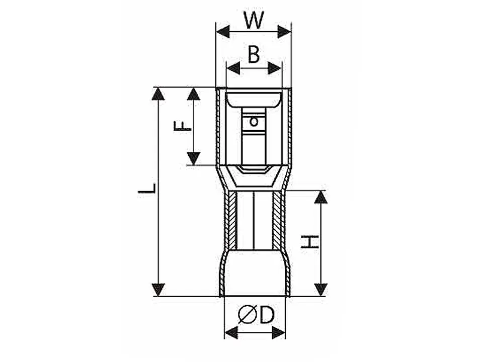 Konektory płaskie żeńskie całkowicie izolowane do kabli miedzianych wielodrutowychWięcej danych w GALERII.DANE TECHNICZNE:- Materiał: mosiądz, cynowany- Izolacja: PVC- Zakres temperatur pracy: -55°C-105°C- Żyła [mm²]: 0,5-1,5- Kolor: niebieski- Szerokość gniazda [mm]: 6,6