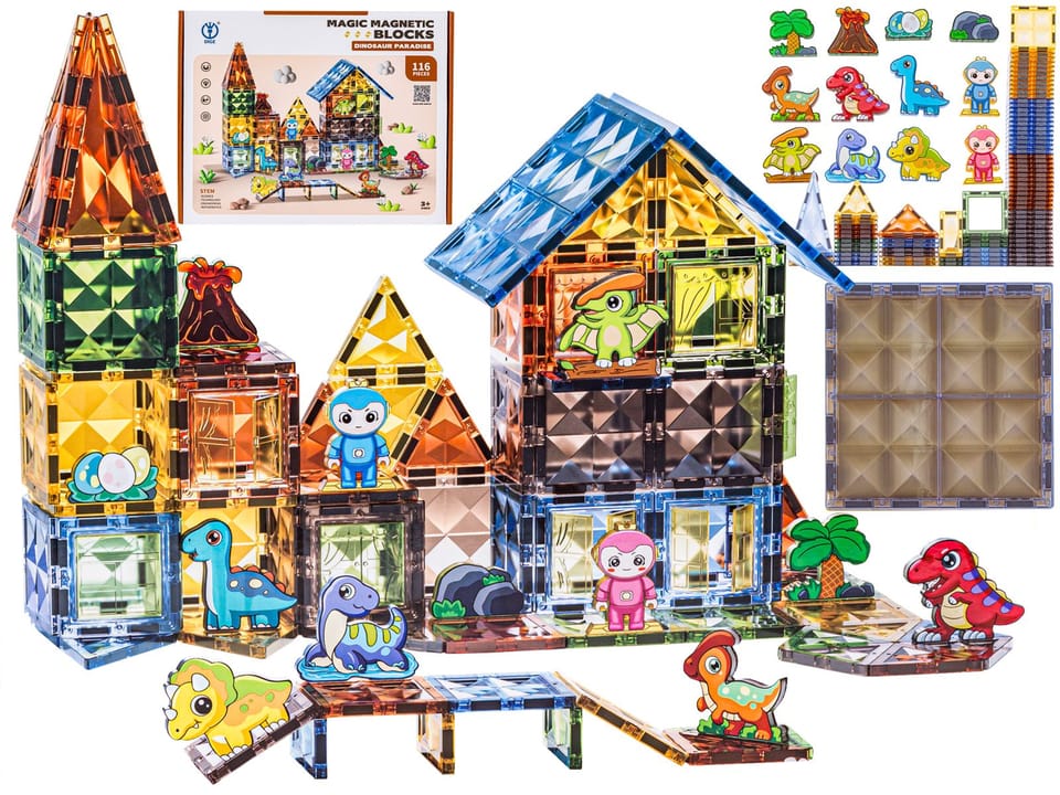 Konstrukcyjne Klocki Magnetyczne PARK DINOZAURÓW 116 El.