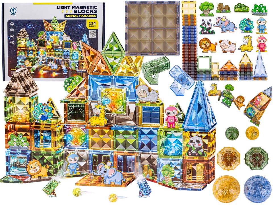 Konstrukcyjne Klocki Magnetyczne Świecące Elementy ZWIERZĘTA 124 El.
