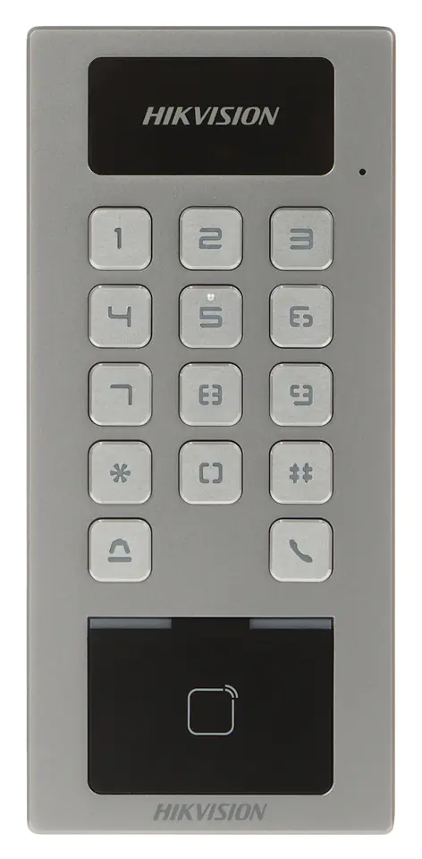 | Wybrane cechy: | 100000 zaindeksowanych użytkownikówMożliwość sterowania przejściem z poziomu aplikacji mobilnej Hik-Connect Czytnik kart pamięci micro SD Obsługa dwukierunkowego audio - Protokół SIP 2.0 Buzzer Sygnalizacja LED Białe podświetlenie przycisków Współpraca z czujnikiem otwarcia i przyciskiem wyjścia Wyjście NO/NC |
