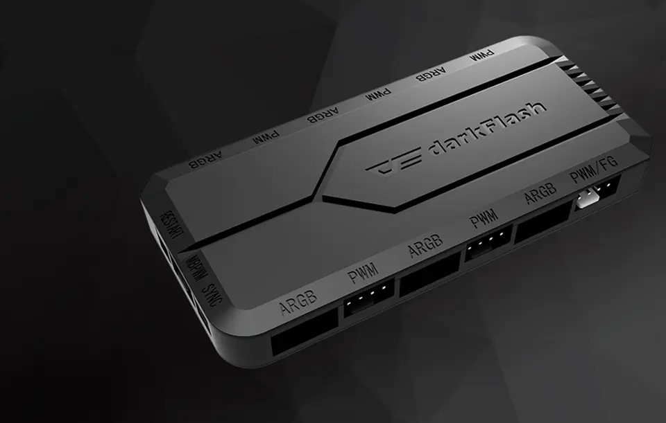 Moduł kontroler PWM marki Darkflash został wyposażony w kilka portów ARGB oraz PWM. Obsługuje aż 14 efektów świetlnych i można go zsynchronizować z płytą główną. Umożliwia kontrolę temperatury oraz prędkości wentylatora. Jest przy tym przyjazny użytkownikom i niezwykle trwały.