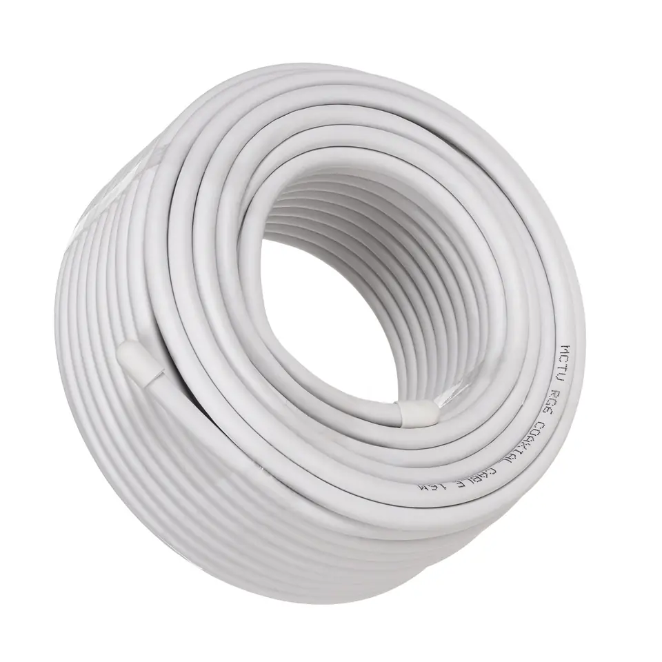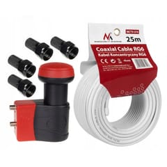 W zestawie kabel koncentryczny typu RG6 używany w profesjonalnych sieciach, rozprowadzający sygnał TV, również stosowany jako kabel antenowy dla systemów odbioru naziemnego i satelitarnego.Idealny do końcowych połączeń odbiorników telewizyjnych i satelitarnych.Nowoczesna technologia oraz zastosowanie najlepszych surowców, decydują o wysokiej jakości prezentowanego przewodu. Kabel cechuje niezawodność, dzięki specjalnie zaprojektowanej konstrukcji, duża wytrzymałość oraz wysoka wydajność, ciesząc się dobrą renomą zarówno wśród amatorów jak i profesjonalistów.Gruby 1mm rdzeń kabla z podwójnym ekranowaniem gwarantuje bardzo wysokie parametry elektryczne oraz wyjątkowo niską tłumienność sygnału.