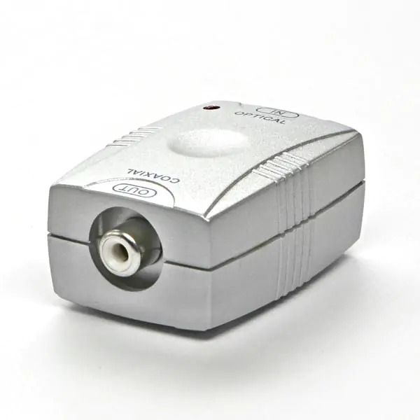 Konwerter audio sygnału cyfrowego, z optycznego na koncentryczny, TOSLINK F - CINCH F, z zasilaczem DC, EOL
