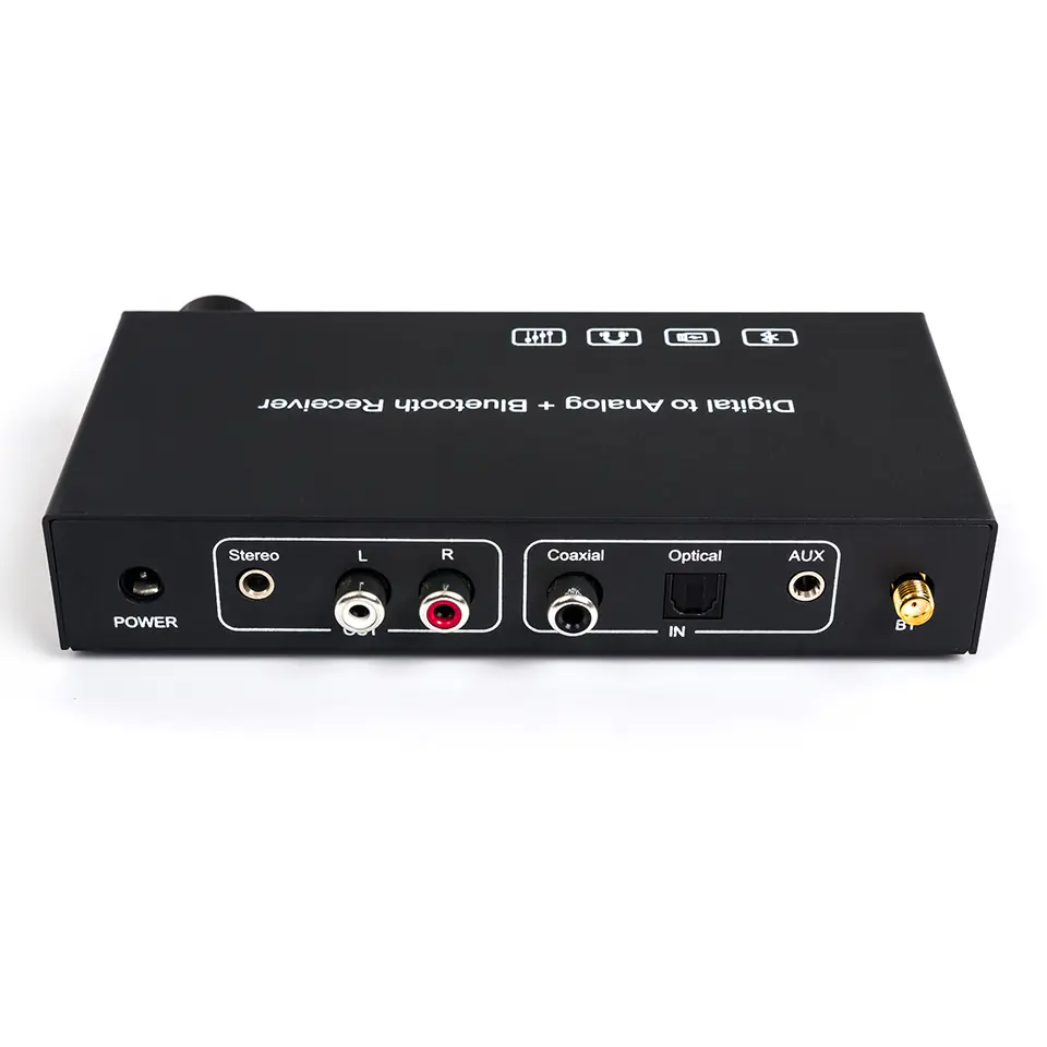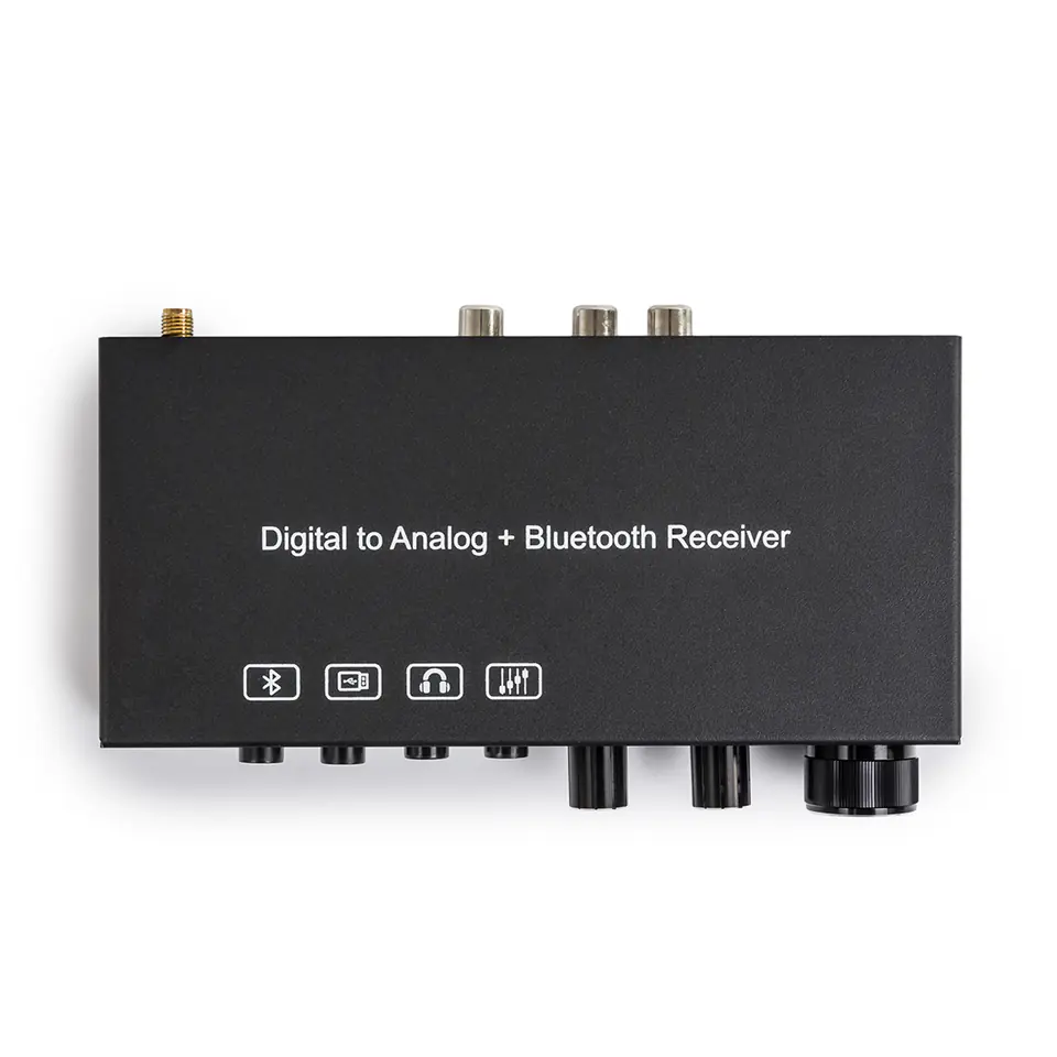 Wbudowany wysokowydajny układ DAC, obsługuje częstotliwość próbkowania 32 ~ 192 K/24bit. Pokrętło regulacji głośności umożliwia jednoczesną regulację głośności gniazda słuchawkowego oraz interfejsu RCA. Pełni również funkcję włącznika. Dodatkowo urządzenie obsługuje wzmocnienie słuchawek 16-300Ω. Wzmacniacz działa również dla połączenia Bluetooth.