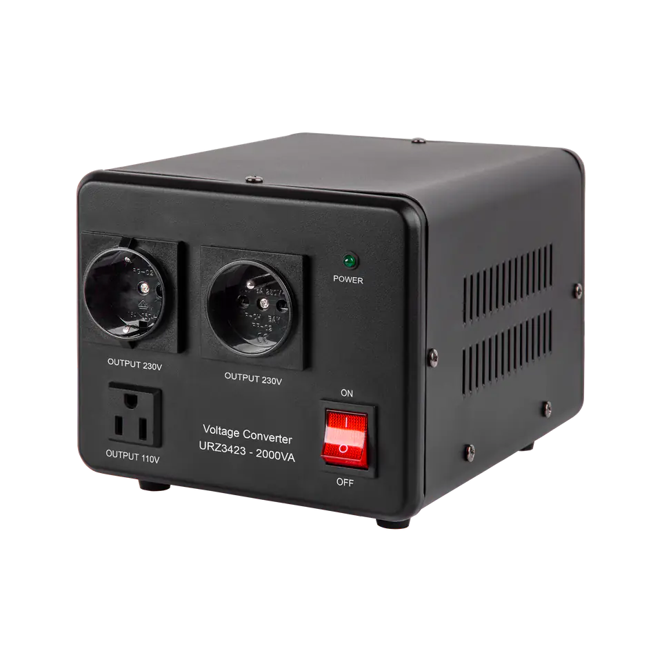 Moc znamionowa: 1600 W2 tryby pracy: 230 V > 115 V / 115 V > 230 VNapięcie wejściowe: 230 VAC lub 115 VACNapięcie wyjściowe: 115 VAC +/-10% lub 230 VAC +/-10%Kształt napięcia wyjściowego/wejściowego: sinusoidaNapięcie wyjściowe: jedna fazaEfektywność wyjściowa: >= 80%Funkcja miękkiego startuCzas opóźnienia: =< 1 sTransformator: toroidalny3 gniazda wyjściowe: amerykańskie, niemieckie, francuskie (polskie)Zabezpieczenia: przed przeciążeniem, zwarciem, przegrzaniemTemperatura pracy: 0-40°CTemperatura przechowywania: 15-45°CWilgotność powietrza: 10-90%Waga: 6,5 kgWymiary: 24 x 17 x 15 cm