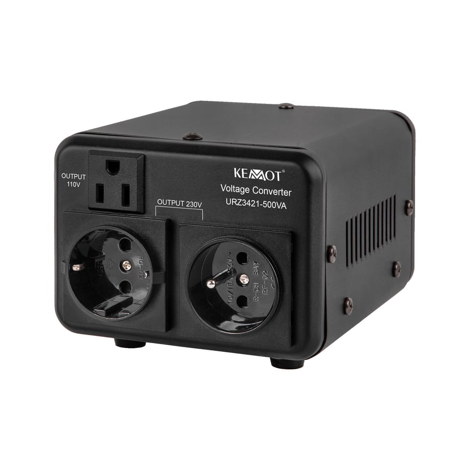 Dwukierunkowy konwerter napięcia o mocy znamionowej 400 W, to urządzenie, którego zadaniem jest obniżanie napięcia zmiennego AC-230V do napięcia zmiennego AC-115V lub podwyższanie napięcia zmiennego AC-115V do napięcia zmiennego AC-230V. Urządzenie to znajdzie zastosowanie wszędzie tam, gdzie chcemy bezpiecznie użyć zagranicznego sprzętu np. z USA w Polsce lub zasilić polskie urządzenia w większości krajów europejskich. Wysoką niezawodność oraz sprawność działania gwarantują wykonana z metalu solidna obudowa i zastosowanie nowoczesnych podzespołów, w tym transformatora toroidalnego.