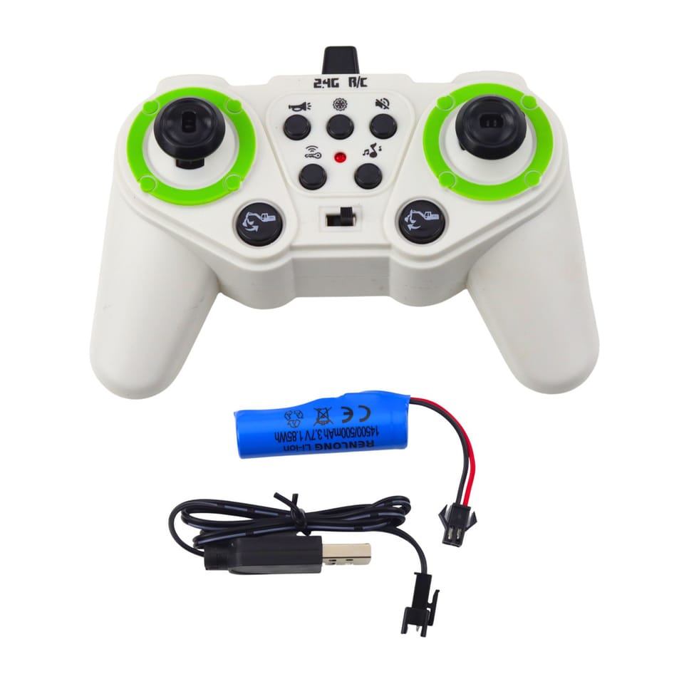 Koparka została wyposażona w funkcję auto demo, która prezentuje jej możliwości po uruchomieniu, a także w efekty świetlne i dźwiękowe, co nadaje zabawie realizmu. Dzięki opcji start/stop użytkowanie jest wygodne i intuicyjne, a pilot 2.4 GHz zapewnia stabilne połączenie i precyzyjne sterowanie.