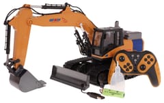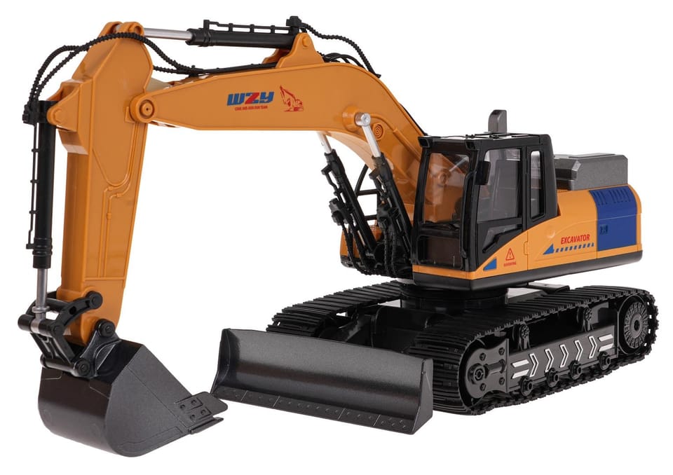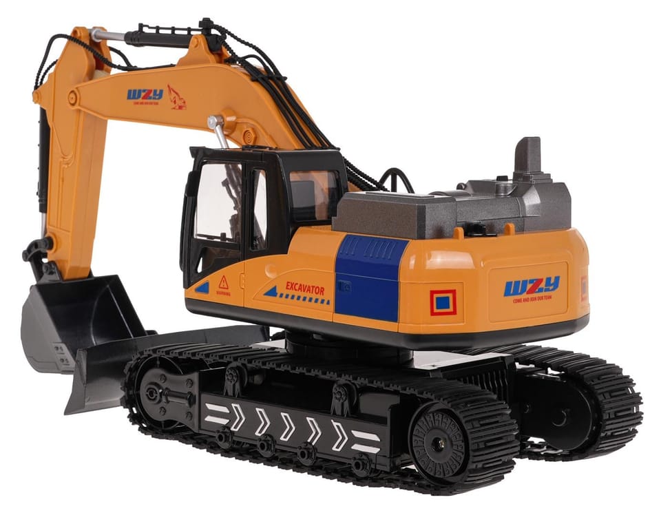 Zdalnie sterowana koparka z funkcją dymu, światła i dźwięku dla dzieci od 3-go roku życia. Pojazd porusza się do przodu i do tyłu oraz posiada wiele ruchomych elementów. Kabina koparki może wykonywać obrót o 360 stopni. Ramię łyżki oraz łyżka może poruszać się w górę i w dół oraz wykonywać manewr nabierania i wysypywania. Podczas jazdy słychać odgłosy pracy maszyny, oraz migocą różnokolorowe światełka wewnątrz koparki. Zabawka posiada funkcję dymu. Koparka zasilana jest akumulatorem typu 3,7 V 800 mAh (w zestawie), pilot bateriami typu 2 x AA 1,5 V (brak w zestawie). Funkcje koparki: - dla dzieci powyżej 3-go roku życia, - zdalnie sterowana 2,4 GHz, - porusza się do przodu u tyłu, skręca w prawą i lewą stronę, - obrotowa kabina o 360 stopni, - oświetlenie wewnątrz koparki, - odgłosy pracy koparki podczas jazdy, - ruchome ramię koparki, - ruchoma łyżka koparki, - możliwość wyłączenia oświetlenia, - tryb demo, pokazujący wszystkie możliwości pracy maszyny, - funkcja dymu, - metalowa łyżka.