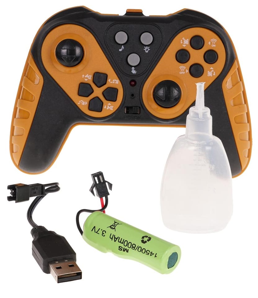 - koparka, - pilot, - akumulator 3,7 V 800 mAh, - kabel do ładowania USB, - pipetka na wodę.