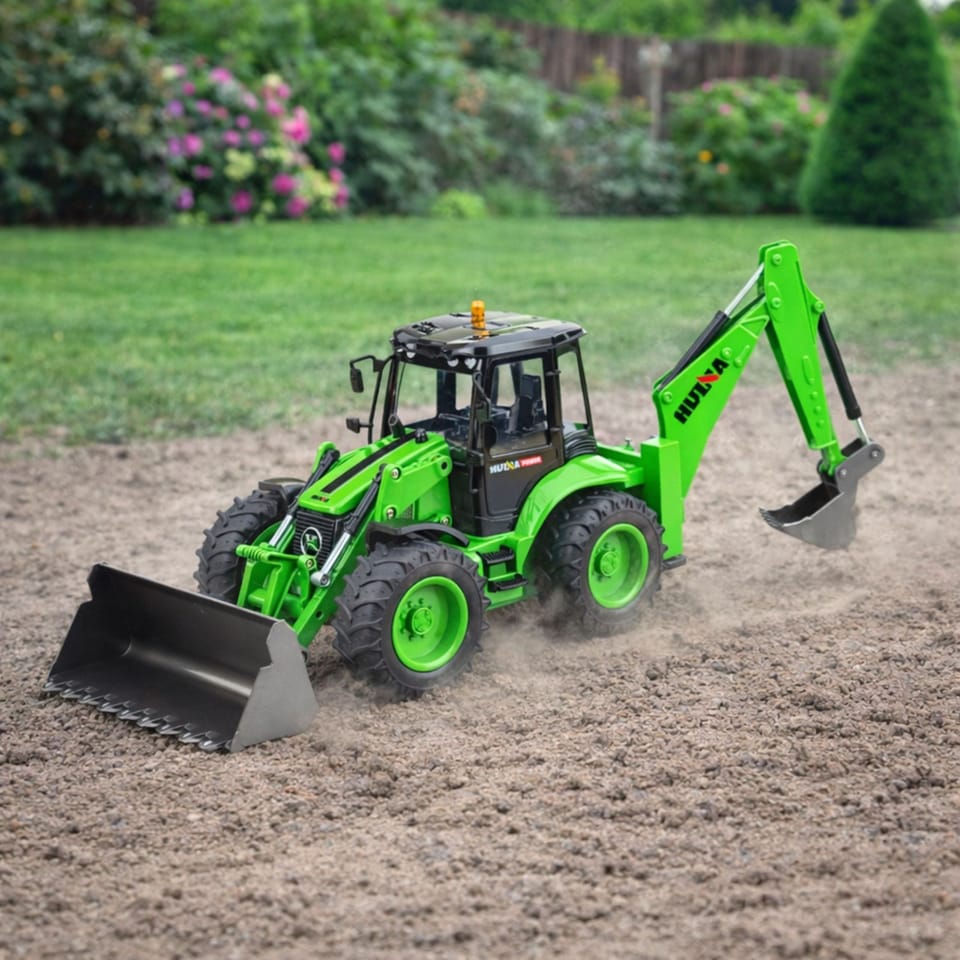 Zdalnie sterowana koparko-ładowarka w skali 1:14 to doskonały model dla miłośników pojazdów budowlanych oraz realistycznych maszyn RC. Dzięki 9-kanałowemu sterowaniu użytkownik ma pełną kontrolę nad pojazdem, mogąc poruszać się do przodu, do tyłu oraz skręcać, a także precyzyjnie obsługiwać zarówno przednią łyżkę, jak i tylną koparkę. To niezwykle interaktywna maszyna, która wiernie odwzorowuje prawdziwe pojazdy wykorzystywane w pracach ziemnych, zapewniając realistyczne wrażenia podczas zabawy.