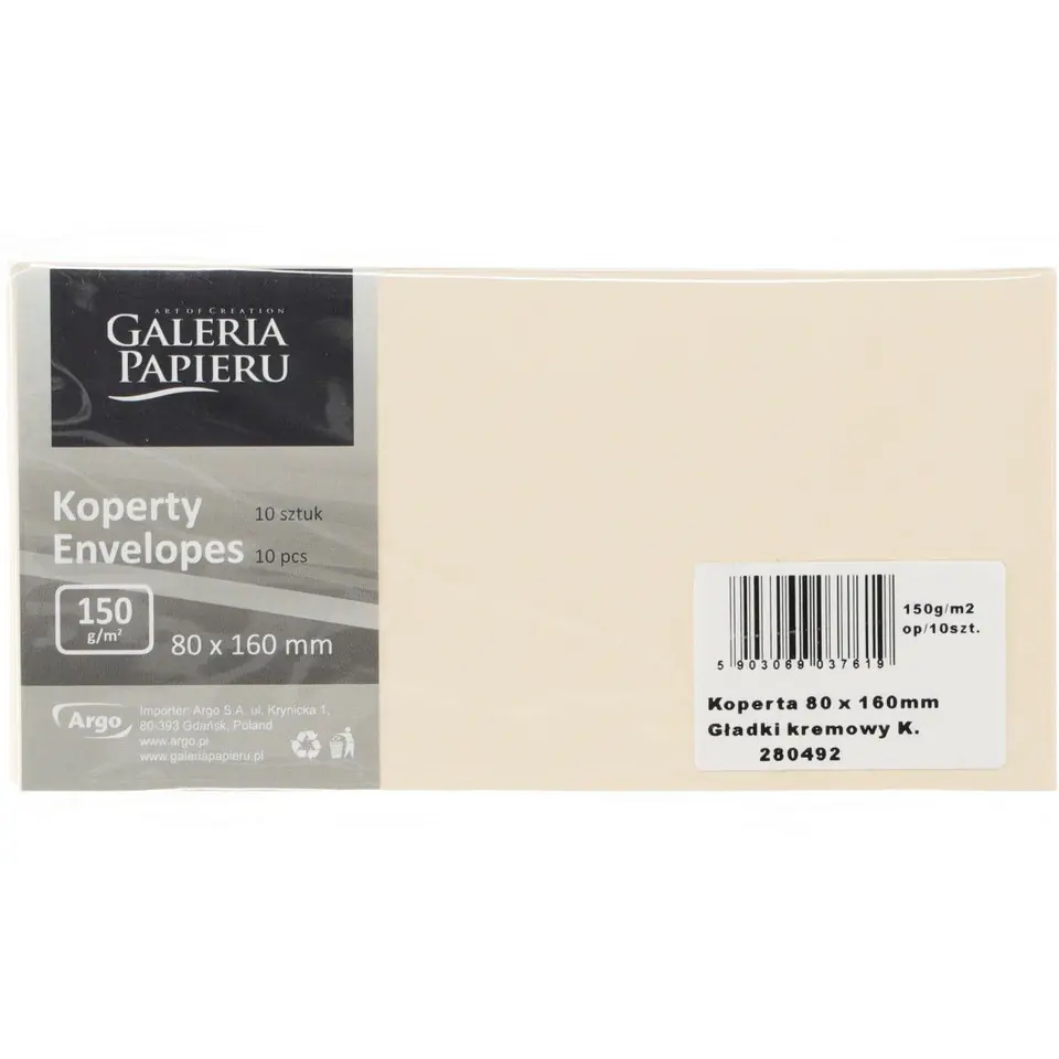 Koperta C6 Mika kremowy 120g. (10szt.) 280247 Galeria Papieru