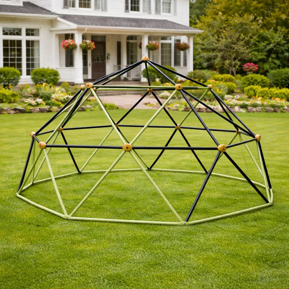 Kształt kopuły sprawia, że konstrukcja jest stabilna i nie wymaga dodatkowego kotwienia w podłożu. Można ją ustawić na trawie, piasku lub innej płaskiej powierzchni, tworząc bezpieczne i funkcjonalne miejsce zabawy dla dzieci.