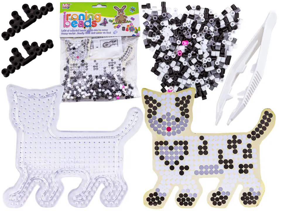Koraliki do prasowania, Prasowanka, Szablon, Saszetka ŁACIATY KOTEK, PSTROKATY KOT
