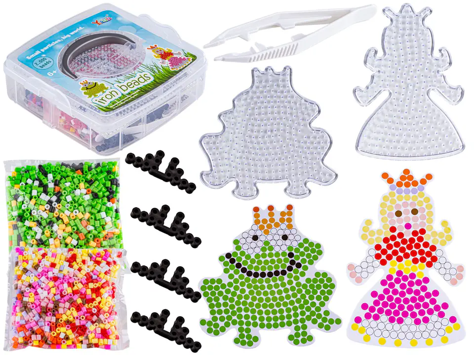 Koraliki Do Prasowania Szablony Księżniczka I Żaba, Zestaw 2000 Elementów, Prasowanka, Kuferek