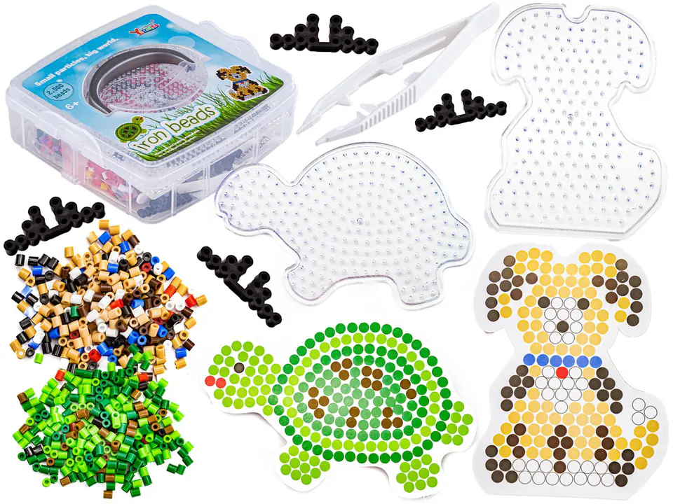 Koraliki Do Prasowania Szablony Piesek, Żółwik, Zestaw 2000 Elementów, Prasowanka, Kuferek