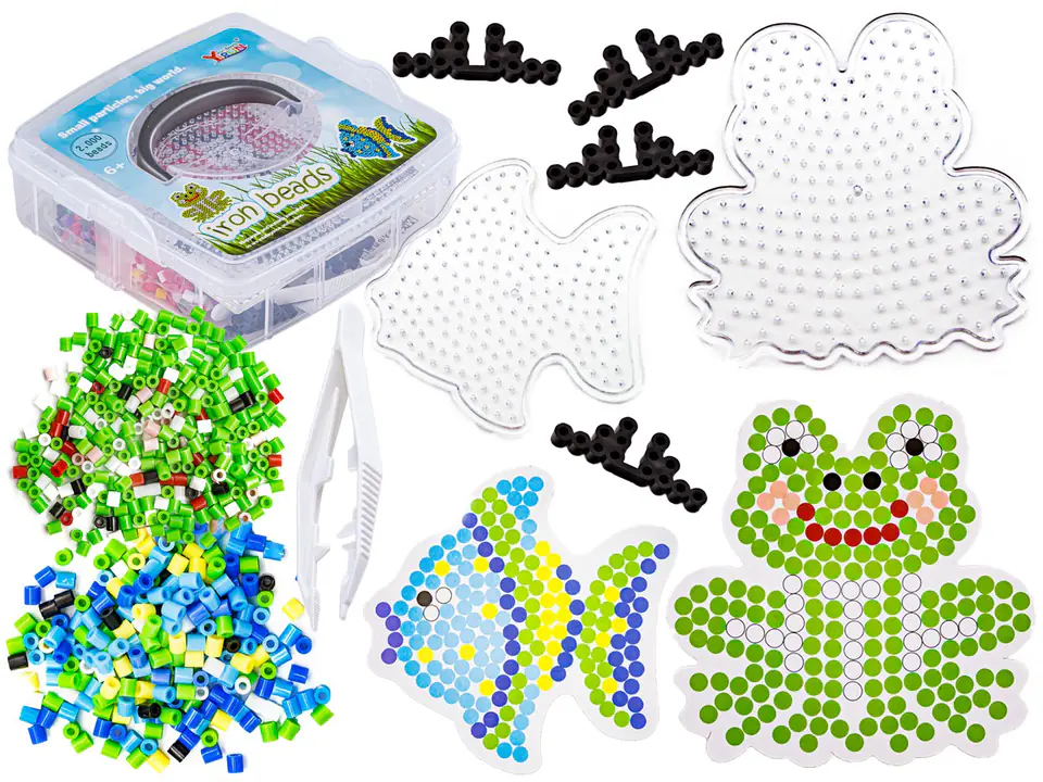 Koraliki Do Prasowania Szablony Rybka, Żabka, Zestaw 2000 Elementów, Prasowanka, Kuferek