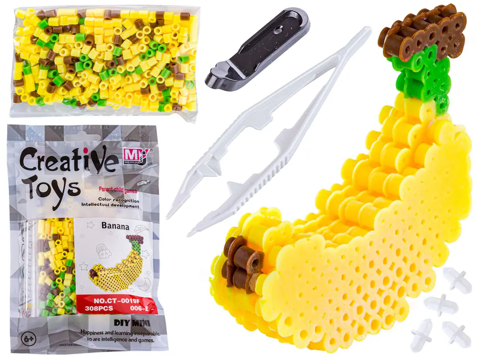 Koraliki do prasowania Wersja 3D, Szablon BANAN Owoce, Saszetka, Prasowanka