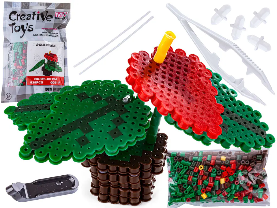 Kolorowe koraliki do prasowania to świetny pomysł na twórczą zabawę - skutecznie zajmują na wiele długich godzin i wyzwalają absolutny wulkan kreatywnych pomysłów! Zestaw pozwala na ułożenie roślinki - anturium 3D.