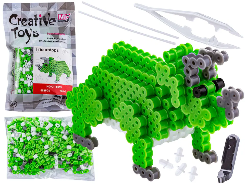 Koraliki do prasowania Wersja 3D, TRICERATOPS, DINOZAUR, Saszetka, Prasowanka