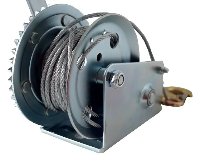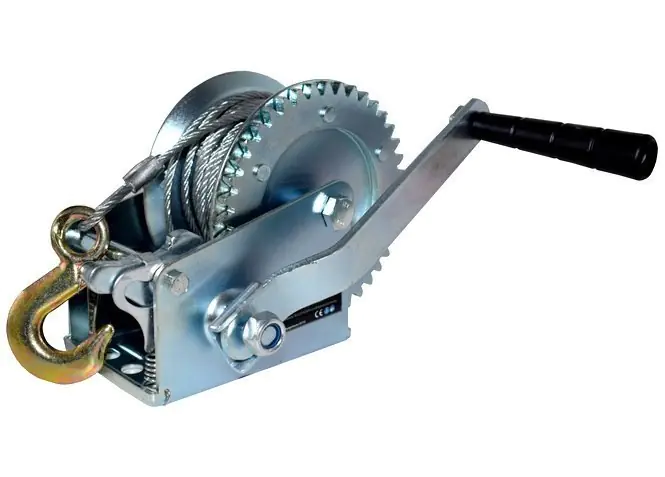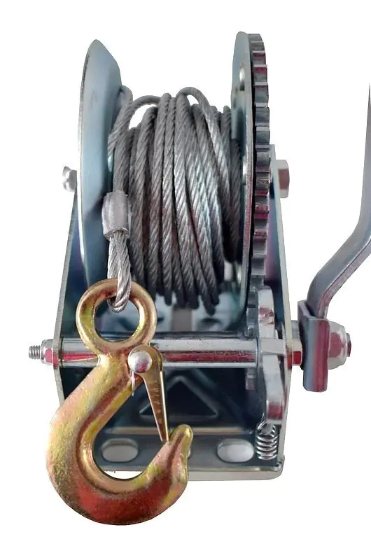 Wyciągarka/wciągarka na korbę wykonana jest z wysokiej jakości materiałów zapewniających jej trwałość i niezawodność podczas użytkowania. Wyposażona jest w mocny odlewny hak ze sprężyną zwrotną. Sprzęt zapewni bezpieczeństwo i bezproblemowe użytkowanie podczas wciągania i opuszczania przedmiotów.