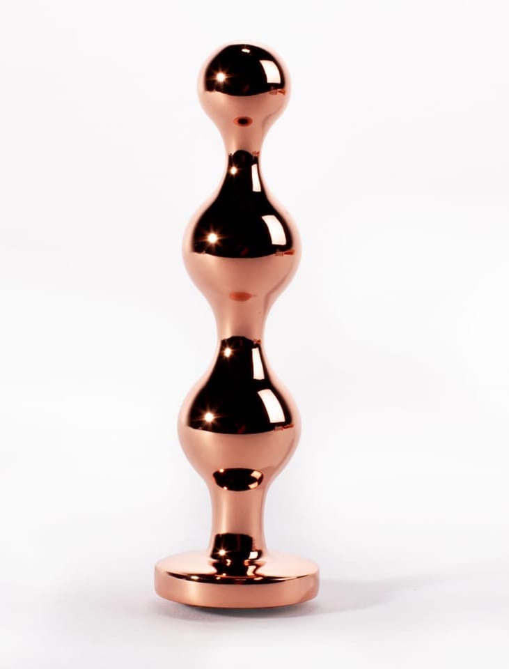 Metalowy korek analny. Długość 10,3cm. Średnica kulek 1,7cm; 2,3cm