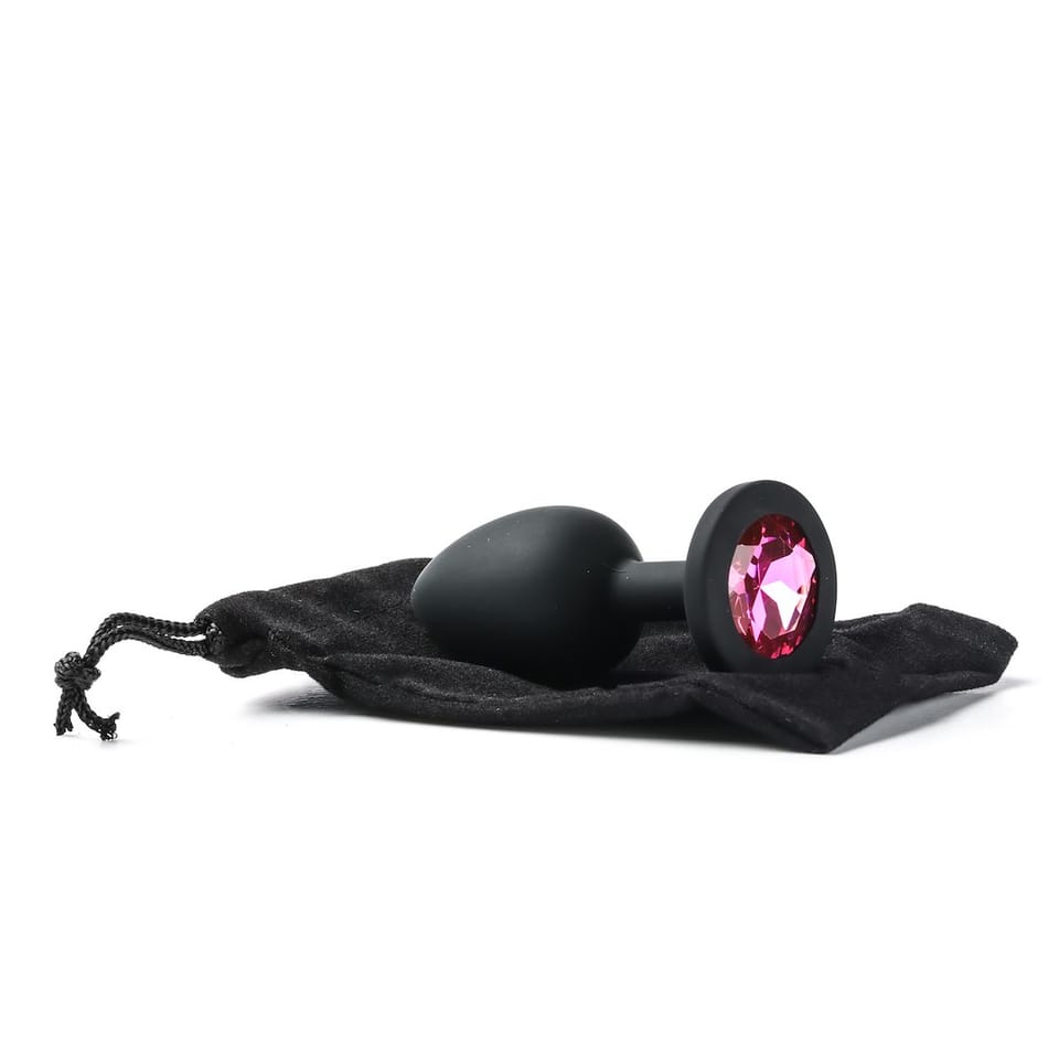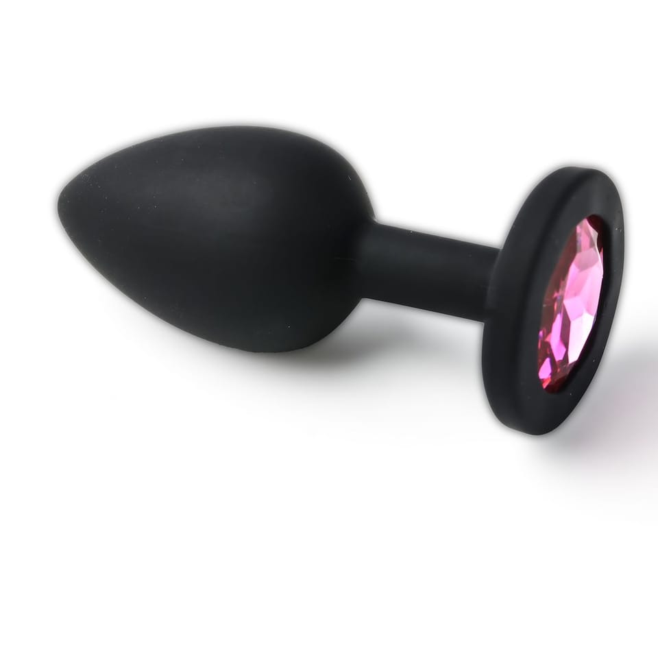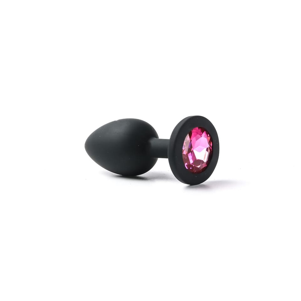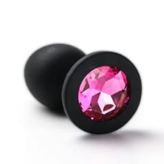 Korek Analny Silikonowy Czarny Rozmiar S Kryształ Ciemno Różowy