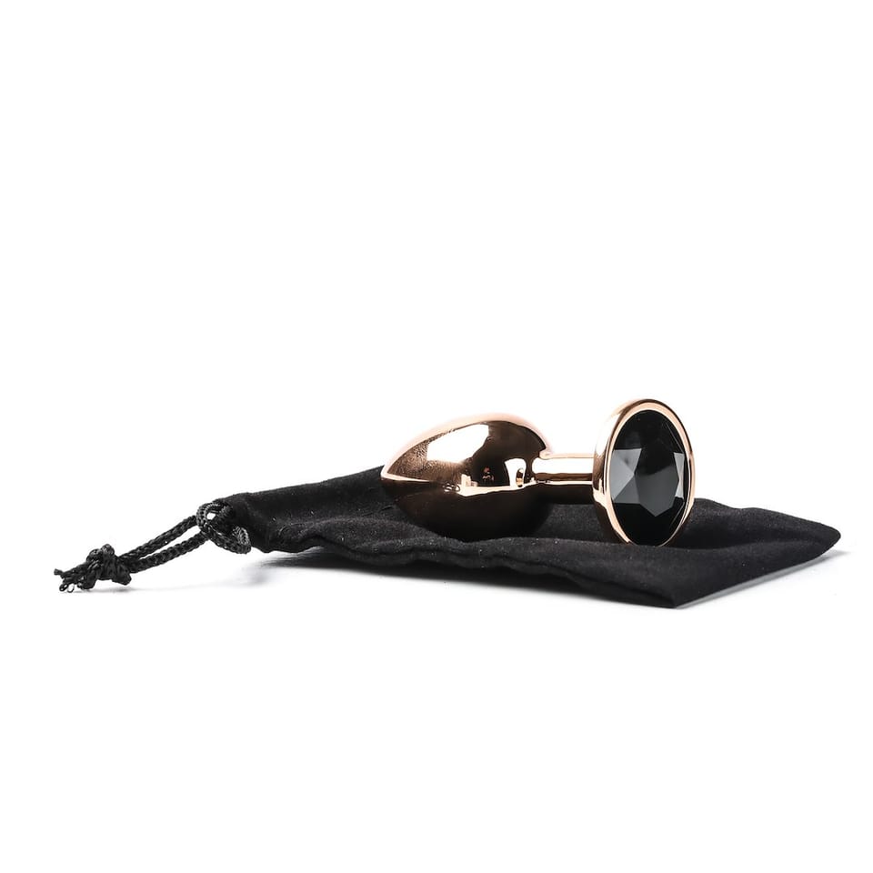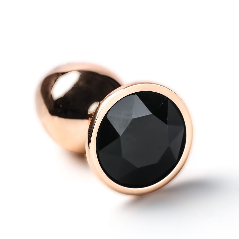 Korek Analny Stalowy Różowe Złoto Rozmiar S Kryształ Czarny
