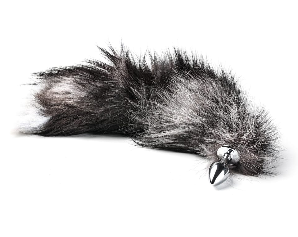 Korek Analny Stalowy Srebrny Rozmiar S Lisi Ogonek Czarny