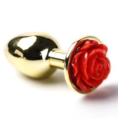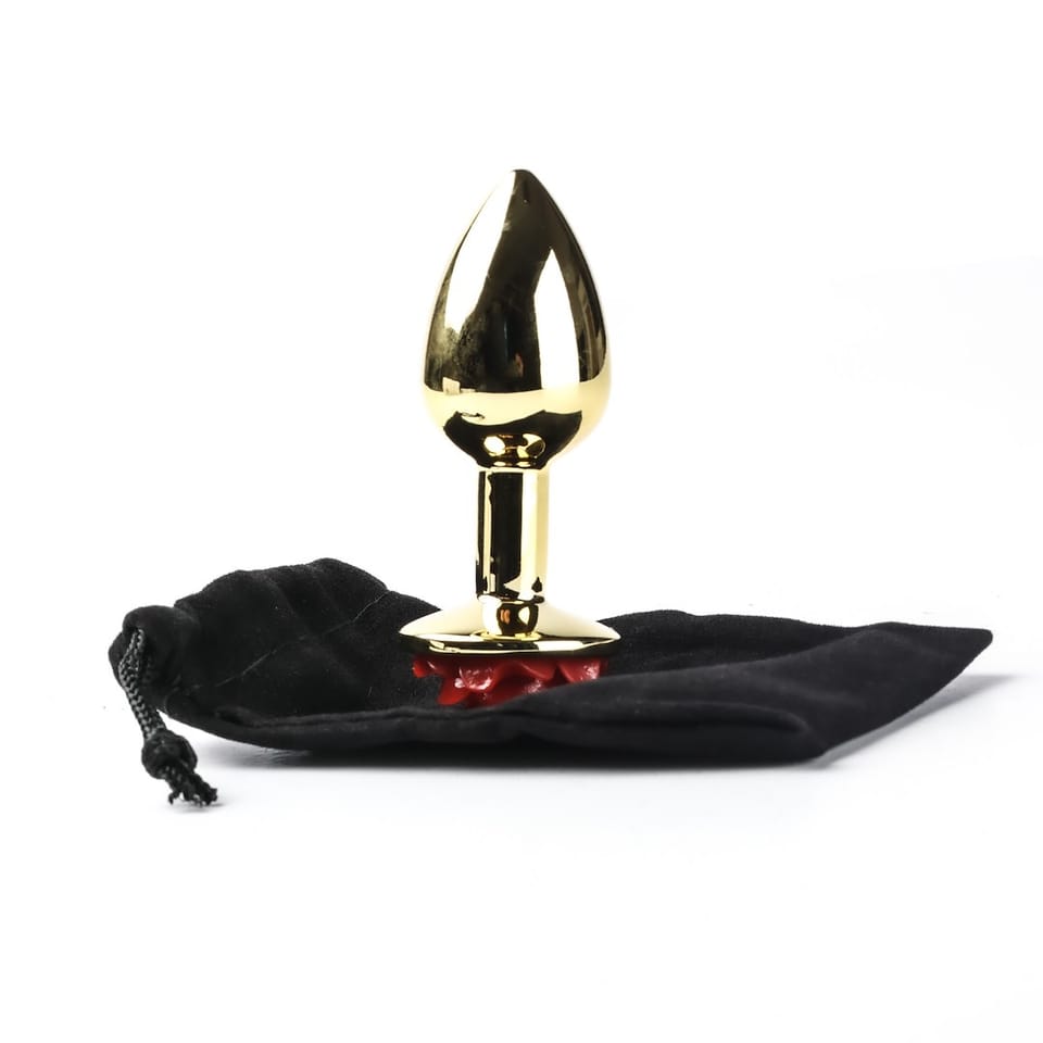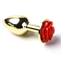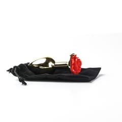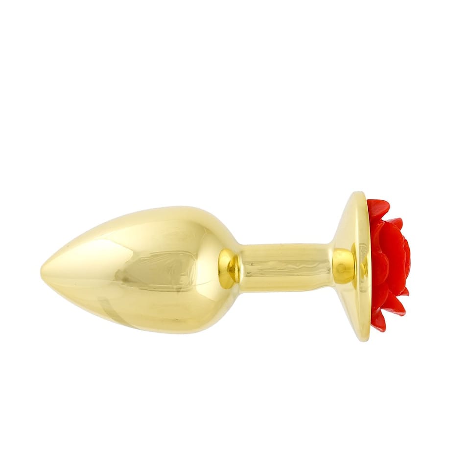 Korek Analny Stalowy Złoty Rozmiar S Czerwona Róża