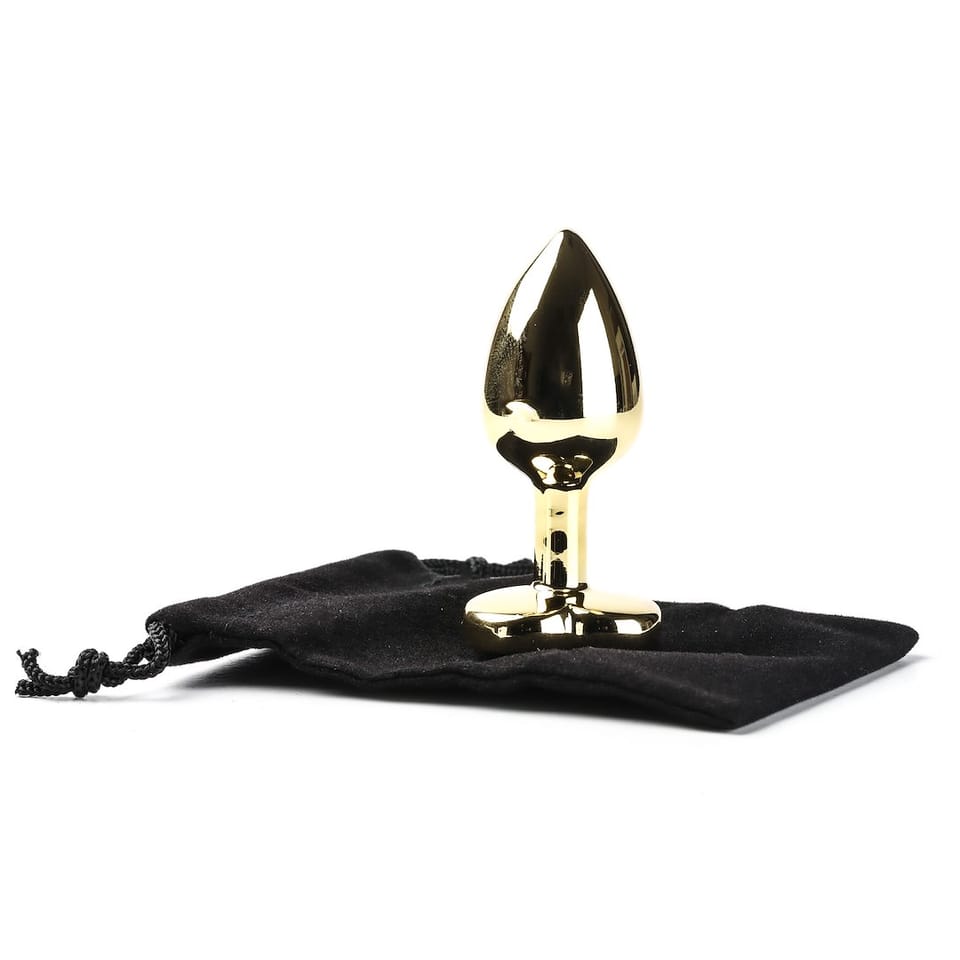 Korek Analny Stalowy Złoty Rozmiar S Kryształ Ciemno Różowe Serce