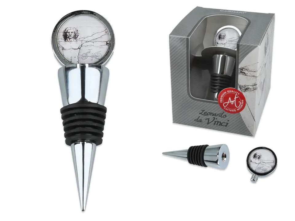 Niech każda butelka stanie się wyjątkowa. Dekoracyjny korek z motywem inspirowanym malarstwem da Vinci wnosi na stół odrobinę luksusu. To nie tylko praktyczny gadżet û to detal, który podkreśla charakter spotkania i dodaje mu niepowtarzalnego klimatu