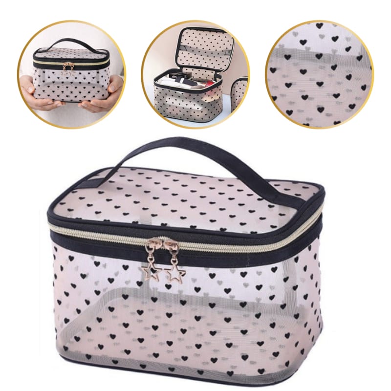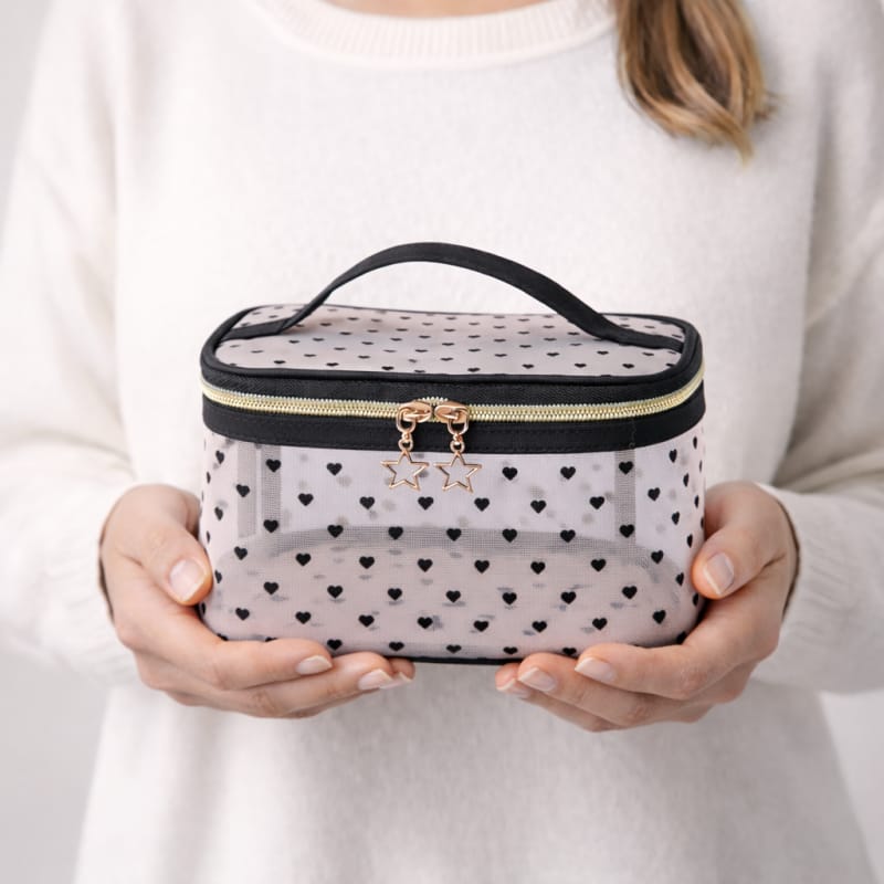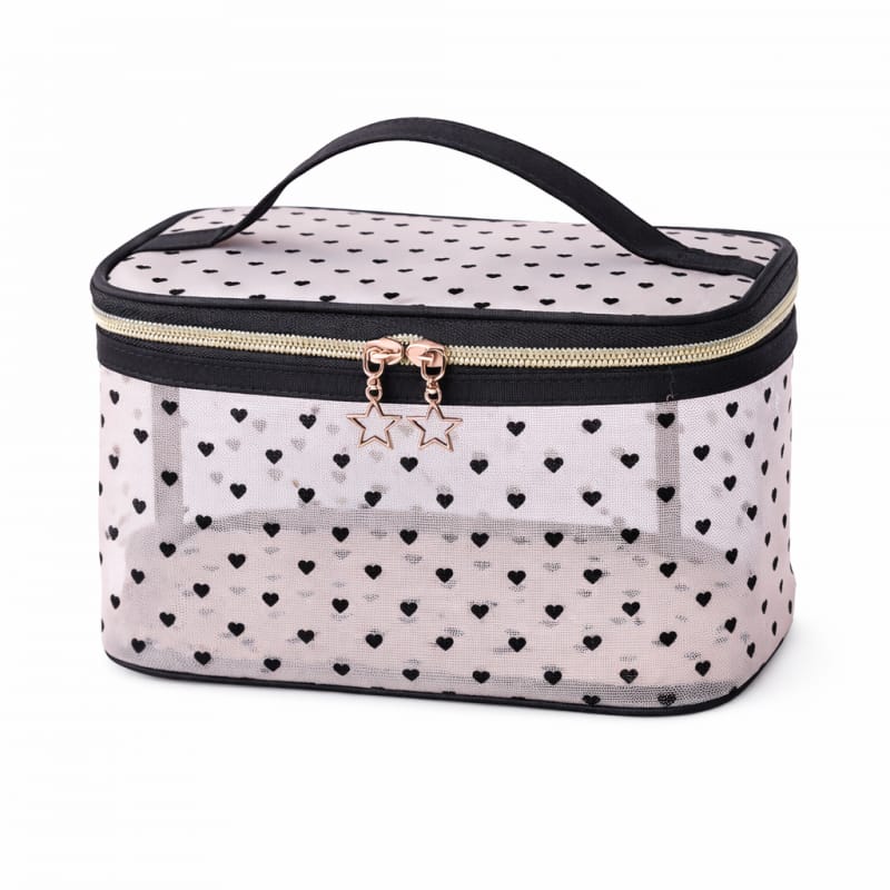 Kosmetyczka damska kuferek transparentna czarne serca 12x21x13cm KS125