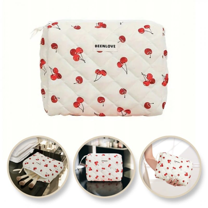 Kosmetyczka damska pikowana w wisienki 19 x 24 x 7cm KS124
