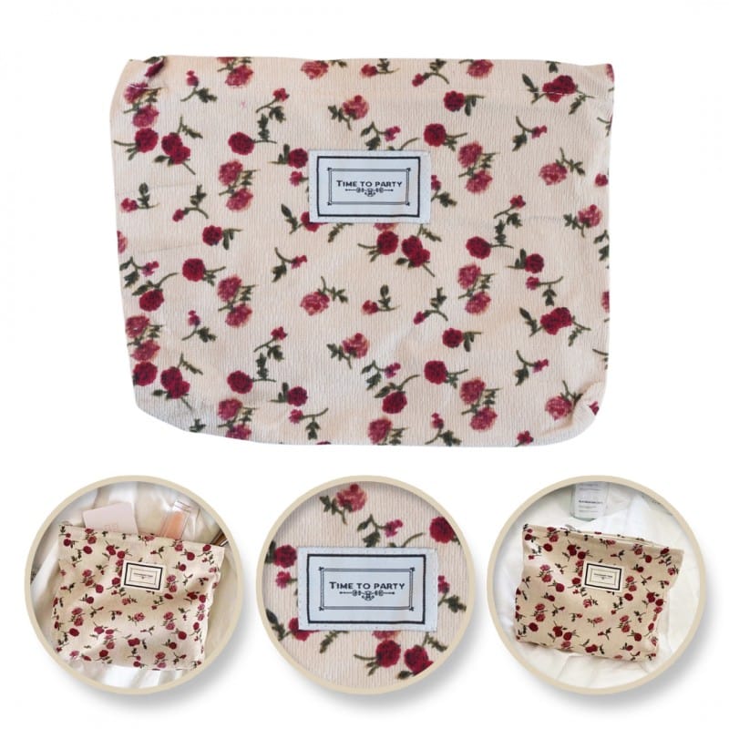 Kosmetyczka jednokomorowa beżowa w czerwone kwiatuszki 25 x 5 x18 cm KS117