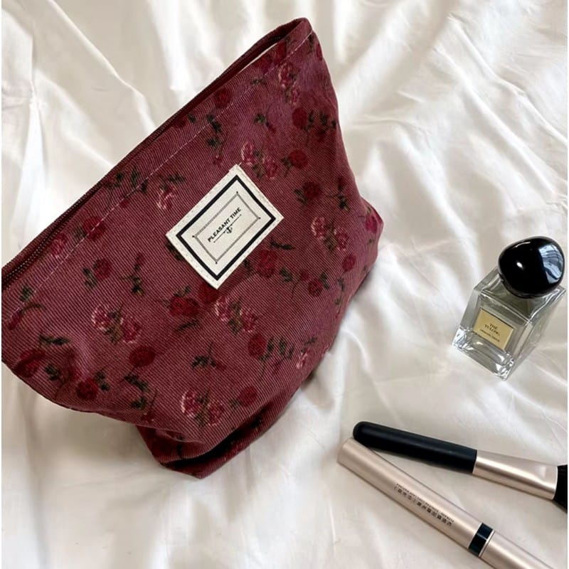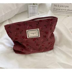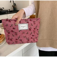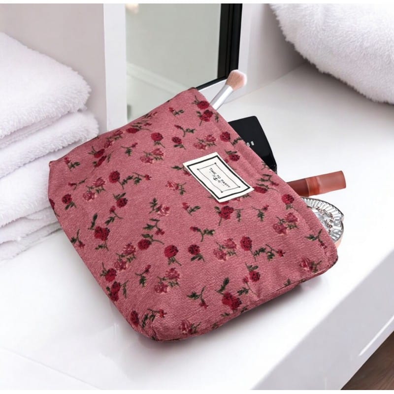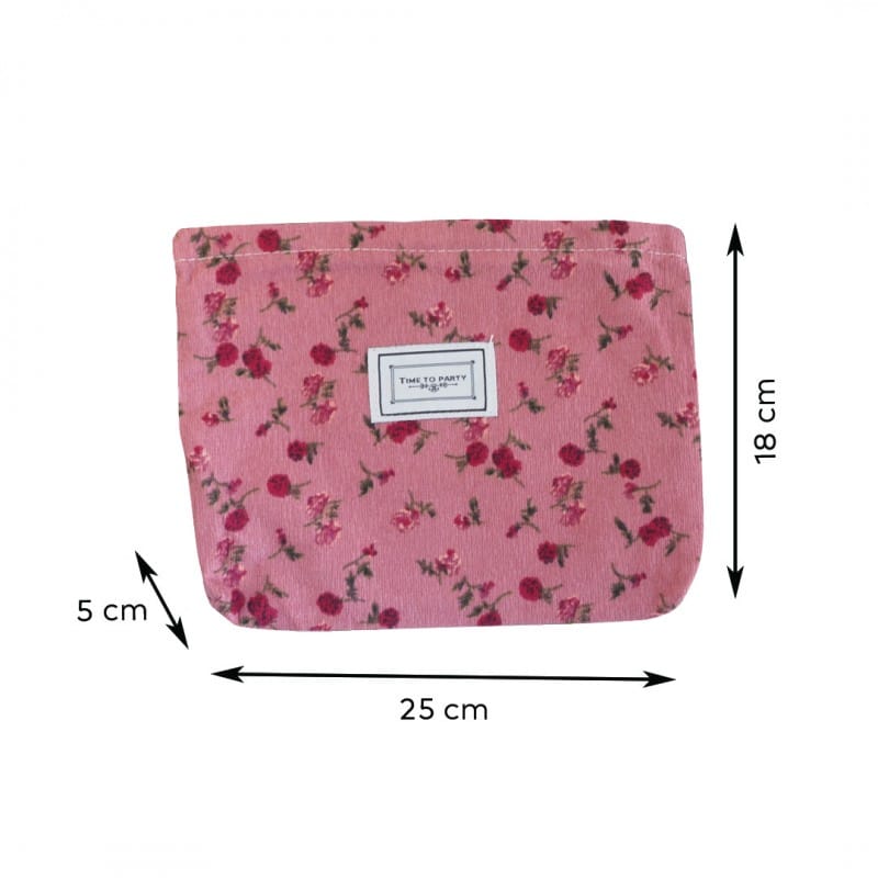 Kosmetyczka jednokomorowa różowa w czerwone kwiatuszki 25 x 5 x18 cm KS118