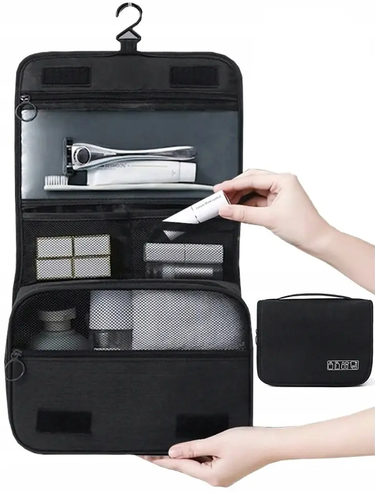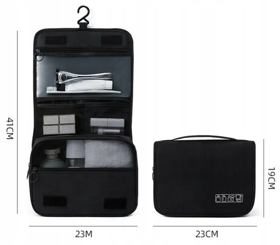 Kosmetyczka podróżna ARDA męska czarnaPrzeznaczenie: organizacja kosmetyków | Kolor: czarny Kosmetyczka ARDA to nie tylko idealny wybór dla codziennych potrzeb, ale także doskonałe rozwiązanie dla osób podróżujących. Dzięki kompaktowemu rozmiarowi łatwo mieści się w każdej torbie podróżnej czy walizce, zapewniając organizację i porządek podczas podróży. Kosmetyczka ARDA jest idealnym towarzyszem każdej podróży. Została wykonana z trwałego i łatwego w czyszczeniu materiału poliestrowego, który zapewnia długą żywotność produktu. Model posiada wygodne zamki błyskawiczne i rzepy, które pozwalają na szybki i łatwy dostęp do zawartości. ARDA posiada aż 3 komory, siatkowane kieszonki oraz przezroczysty panel, dzięki czemu pomieści wiele kosmetyków. Jest wygodna w użytkowaniu, łatwo się rozkłada oraz można ją powiesić na haczyku. SpecyfikacjaMateriał: poliesterZamek: błyskawicznyMocne rzepyAż 3 pojemne komoryOsiatkowane kieszonkiPrzezroczysty panelZastosowanie: idealne na podróże, do przechowywania kosmetyków w domu lub w drodzeMożliwość powieszenia dzięki wbudowanemu haczykowi WymiaryWysokość: 19 cmSzerokość: 23 cmGłębokość: 9 cm ZaletyNajwyższa jakość materiałówSolidnie wykonanaMocne rzepy i zamki błyskawiczneWygodna rączka do przenoszeniaEstetycznie wykończonaWodoodporny materiałDuża ilość komórOsiatkowane kieszonkiPrzezroczysty panelWbudowany haczyk do powieszeniaMała po spakowaniuŁatwo się rozkładaPrzyjemny dla oka kolor Informacje dodatkowePrzedstawione kolory należy traktować poglądowo - mogą odbiegać od rzeczywistych ze względu na różne ustawienia monitorów oraz proces obróbki zdjęć. Rzeczywiste wymiary mogą się różnić od podanych wyżej. Tolerancja błędów może wynosić +/- 5%.Marka:GockowiakKod produktu:328880MGMateriał:poliesterWysokość: 19 cmSzerokość:23 cmGłębokość:9 cmIlość komór:3