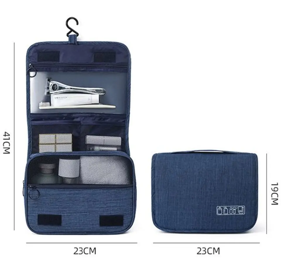 Kosmetyczka podróżna ARDA męska granatowaPrzeznaczenie: organizacja kosmetyków | Kolor: granatowy Kosmetyczka ARDA to nie tylko idealny wybór dla codziennych potrzeb, ale także doskonałe rozwiązanie dla osób podróżujących. Dzięki kompaktowemu rozmiarowi łatwo mieści się w każdej torbie podróżnej czy walizce, zapewniając organizację i porządek podczas podróży. Kosmetyczka ARDA jest idealnym towarzyszem każdej podróży. Została wykonana z trwałego i łatwego w czyszczeniu materiału poliestrowego, który zapewnia długą żywotność produktu. Model posiada wygodne zamki błyskawiczne i rzepy, które pozwalają na szybki i łatwy dostęp do zawartości. ARDA posiada aż 3 komory, siatkowane kieszonki oraz przezroczysty panel, dzięki czemu pomieści wiele kosmetyków. Jest wygodna w użytkowaniu, łatwo się rozkłada oraz można ją powiesić na haczyku. SpecyfikacjaMateriał: poliesterZamek: błyskawicznyMocne rzepyAż 3 pojemne komoryOsiatkowane kieszonkiPrzezroczysty panelZastosowanie: idealne na podróże, do przechowywania kosmetyków w domu lub w drodzeMożliwość powieszenia dzięki wbudowanemu haczykowiWymiaryWysokość: 19 cmSzerokość: 23 cmGłębokość: 9 cmZaletyNajwyższa jakość materiałówSolidnie wykonanaMocne rzepy i zamki błyskawiczneWygodna rączka do przenoszeniaEstetycznie wykończonaWodoodporny materiałDuża ilość komórOsiatkowane kieszonkiPrzezroczysty panelWbudowany haczyk do powieszeniaMała po spakowaniuŁatwo się rozkładaPrzyjemny dla oka kolor Informacje dodatkowePrzedstawione kolory należy traktować poglądowo - mogą odbiegać od rzeczywistych ze względu na różne ustawienia monitorów oraz proces obróbki zdjęć. Rzeczywiste wymiary mogą się różnić od podanych wyżej. Tolerancja błędów może wynosić +/- 5%.Marka:GockowiakKod produktu:328903MGMateriał:poliesterWysokość: 19 cmSzerokość:23 cmGłębokość:9 cmIlość komór:3