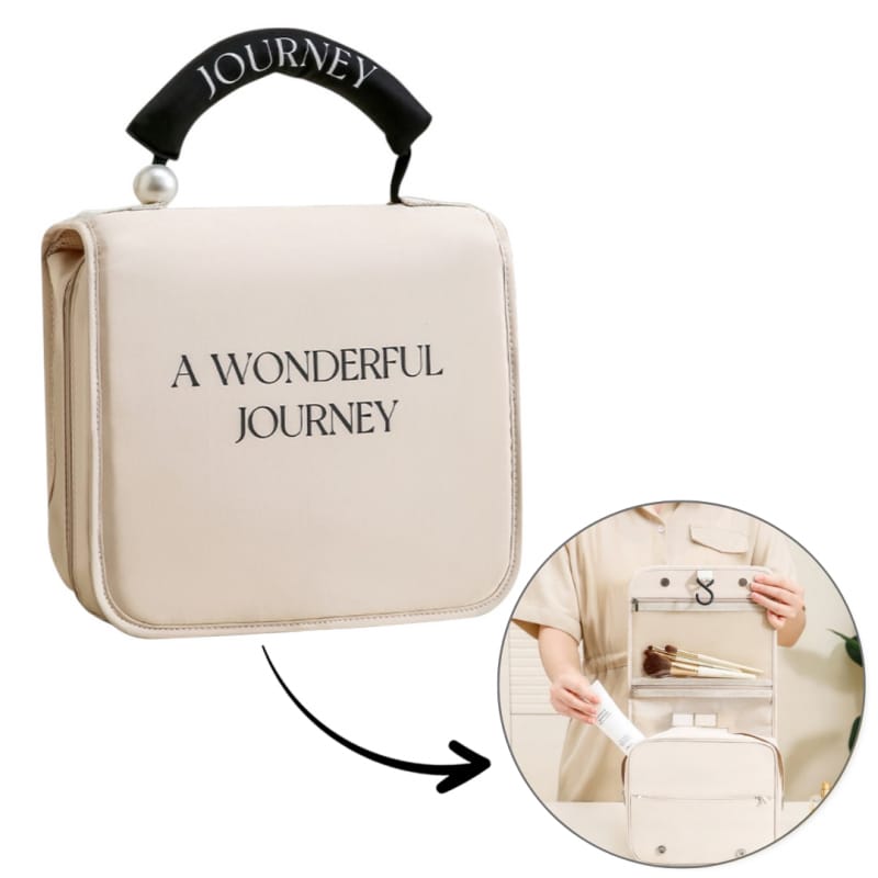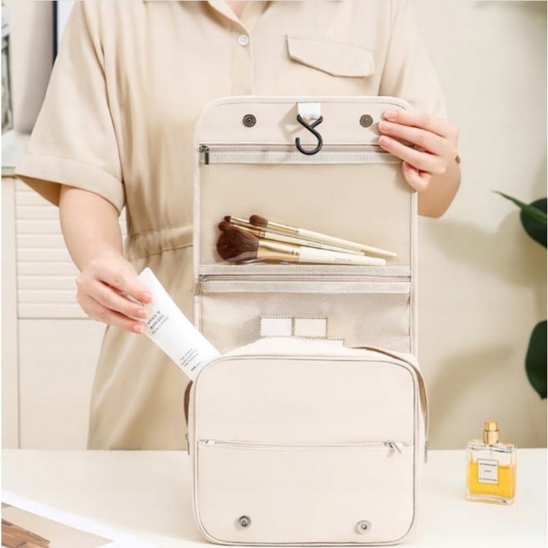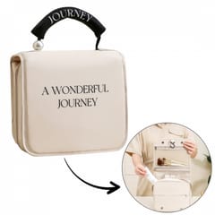 Kosmetyczka rozkładana elegancka kuferek etui z rączką kremowa KS153K