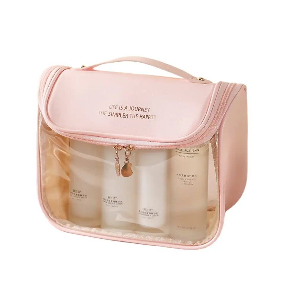 Organizer na kosmetyki / kosmetyczka podróżna Wykonana z miękkiego, śliskiego materiału. Bardzo praktyczna i uniwersalna.Kosmetyczka w sam raz na dłuższe podróże czy wyjazdy - jest bardzo poręczna i pojemna, pomieści wszystkie niezbędne rzeczy.Posiada jedną komorę zasuwaną na zamek.Kosmetyczka jest bardzo pojemna.Możliwość zawieszenia za pomocą specjalnego haczyka. Wymiary: na ostatnim zdjęciuWaga: 160g