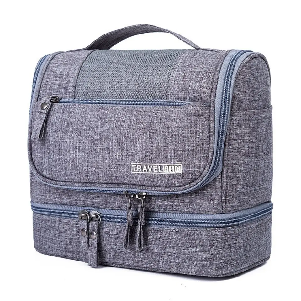 Wodoodporny organizer na kosmetyki / kosmetyczka podróżna.Modny dodatek na podróż - rozkładana kosmetyczka! Wykonana z miękkiego, wodoodpornego materiału. Bardzo praktyczna i uniwersalna. Posiada dwie komory zapinane na zamek.Kosmetyczka w sam raz na dłuższe podróże czy wyjazdy - jest bardzo poręczna i pojemna, pomieści wszystkie niezbędne rzeczy.Kosmetyczka jest bardzo pojemna.Kolor:granatowy z niebieskim zamkiem Wymiary: 25 x 21 x 11,5 cm Długość zawieszonej kosmetyczki: 44 cm