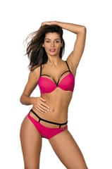 - Stylowy, dwuczęściowy kostium kąpielowy. Biustonosz o gładkich miseczkach, świetnie zbiera piersi do dekoltu, mocno unosi je i optycznie powiększa, dzięki dołączonym do zestawu (i w razie potrzeby wyjmowanymi z modelu) poduszeczkami push up. Jego dodatkową zaletą są efektowne, cienkie paseczki przy dekolcie, które prezentują się bardzo sexy. Ramiączka o regulowanej długości. Obwód zapinany na klamerkę. W zestawie wygodne figi, również ozdobione paseczkami wokół bioder. Włoska, wysokogatunkowa tkanina Carvico TesuttiKostium szybkoschnący, odporny na działanie promieni słonecznych (nie blaknie)Usztywnione miseczki z push up-emWypełnienie push up (dostępne w rozmiarach S, M, L), wyjmowane z modeluŚwietnie zbiera, unosi, modeluje i powiększa piersiRamiączka o regulowanej długościObwód zapinany na klamerkęFigi z ozdobnymi paseczkami wokół bioder. Skład: 80% poliamid, 20% elastan. Prać ręcznie w temp. wody do 30-stu stopni. Nie suszyć mechanicznie. Nie wirować. Jakość pierwsza.
