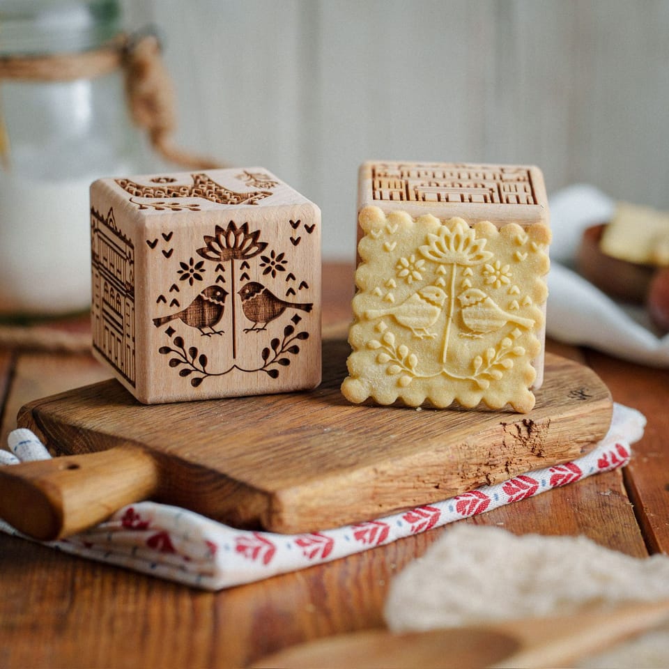 Grawerowana kostka z drewna bukowego jest idealnym narzędziem do odciskania wzorów na cieście. Kostka posiada 6 unikalnych wzorów, a głęboki grawer zapewnia precyzyjne odwzorowanie detali, co pozwala na tworzenie wyjątkowych ciasteczek.Frezowane krawędzie gwarantują estetykę i bezpieczeństwo użytkowania.Idealny pomysł na oryginalny prezent a także świetne narzędzie do kreatywnej zabawy w kuchni.