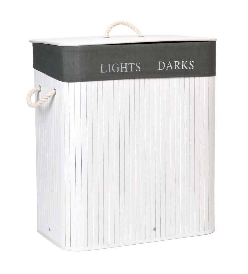 Kosz bambusowy pojemnik na pranie 2 komory biało-szary