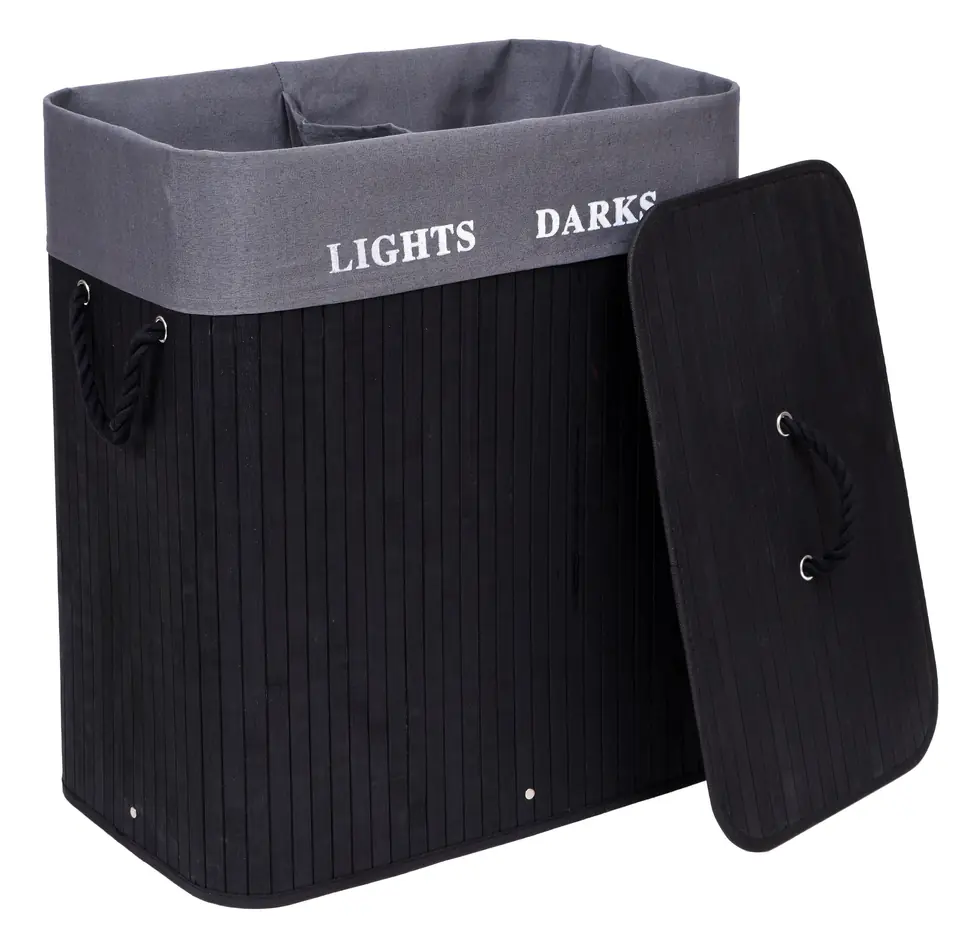 Kosz bambusowy pojemnik na pranie 2 komory czarny FSC
