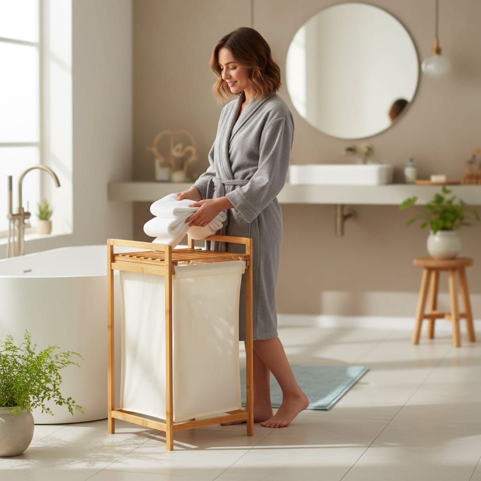 kosz na pranie lub zabawki bambusowy HANOI 1 przegroda