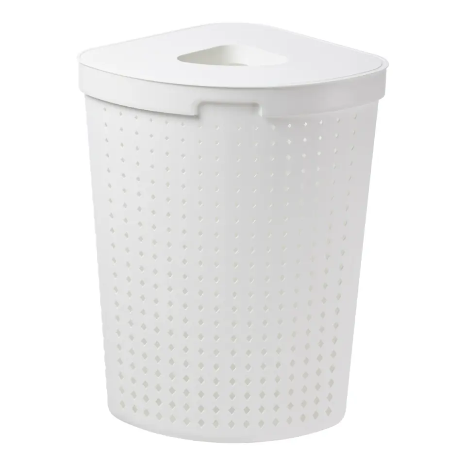 Zestaw zawiera- Kosz na pranie narożny Plast Team Seoul 62L kolor biały