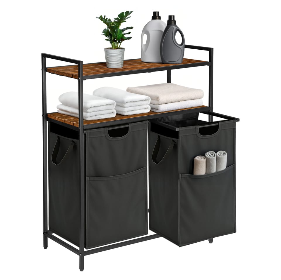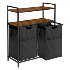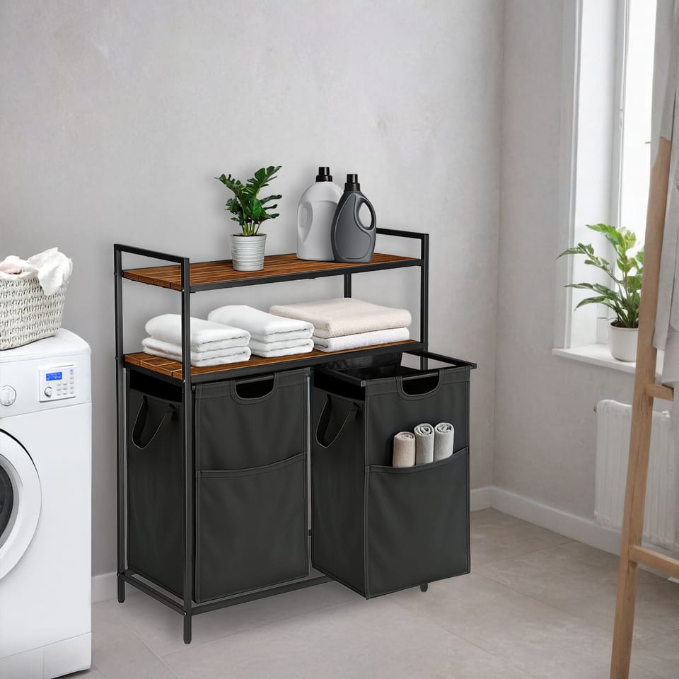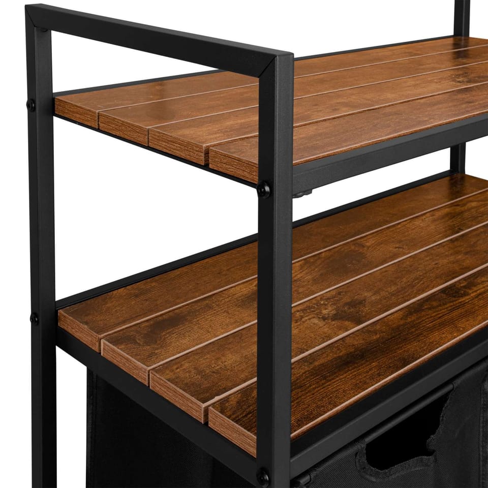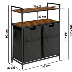 Kosz na pranie z półkami 2 komory MIRUNPrzeznaczenie: łazienka | Kolory: czarny/postarzany dąb⭐️ Solidna stalowa konstrukcja⭐️ Wysuwane materiałowe kosze⭐️ Duża pojemność 80L⭐️ Praktyczne półki w kolorze postarzanego dębu⭐️ Zakup od producenta ✨Kosz na pranie dwukomorowy z półkami Mirun 80L✨☑️ Kolor: czarny/postarzany dąbKosz na pranie dwukomorowy z półkami Mirun to idealne rozwiązanie dla osób ceniących funkcjonalność i stylowy wygląd. Dzięki dwóm pojemnym koszom możesz łatwo segregować pranie, a dodatkowe półki zapewniają miejsce na ręczniki i inne akcesoria łazienkowe. Solidna konstrukcja i loftowy design sprawiają, że kosz Mirun doskonale wpasuje się w każde wnętrze, dodając mu industrialnego charakteru. Korzystając z tego kosza, oszczędzasz miejsce i zyskujesz uporządkowaną przestrzeń w łazience. CechyMateriał stelażu: stal malowana proszkowoMateriał półek: płyta laminowana w kolorze postarzany dąbKosze: dwa czarne, wysuwane na prowadnicach z usztywnianym dnemMocowanie koszy: odpinane na rzepPółki: dwie półki na ręczniki lub akcesoria łazienkoweNóżki: regulowane, z możliwością wypoziomowaniaStyl: loftowy, industrialnyMaksymalne obciążenie półki: 20 kgMaksymalne obciążenie każdego worka: 5 kgPojemność: 80 litrów WymiaryWysokość całkowita: 92 cmSzerokość: 73 cmGłębokość: 33 cmWysokość półek od podłogi: 64 cm, 85,5 cmOdległość między półkami: 20 cmSzerokość półek: 70 cm Wymiary jednej komoryWysokość: 52 cmSzerokość: 34 cmGłębokość: 30 cm Informacje dodatkowePrzedstawione kolory należy traktować poglądowo - mogą odbiegać od rzeczywistych ze względu na różne ustawienia monitorów oraz proces obróbki zdjęć. Rzeczywiste wymiary mogą się różnić od podanych wyżej. Tolerancja błędów może wynosić +/- 5%. Marka:LoftInspiredKod produktu:MG063929Kod EAN:5905523063929Kolor:czarny\postarzany dąbWysokość: 92 cmSzerokość:73 cmMateriał stelaża:stal malowana proszkowo